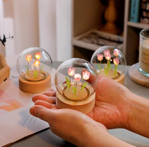 Beautiful crystal ball tulip lamp creating warm, magical ambience