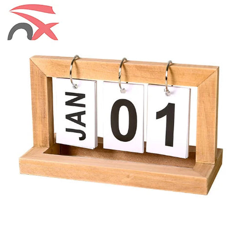 Desktop Wooden Perpetual Flip Calendar – Month Display for Office & Home